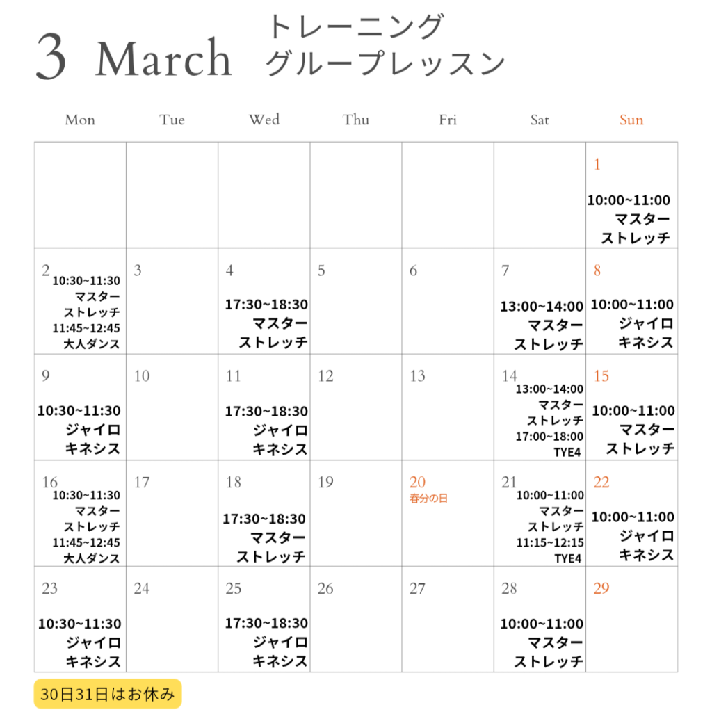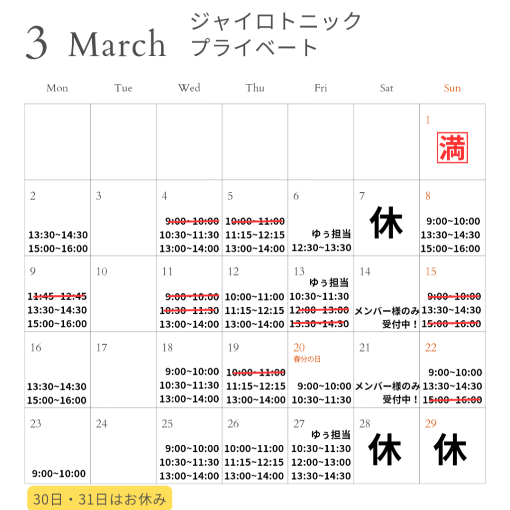 ●3/30月曜日Shieri先生全て休講