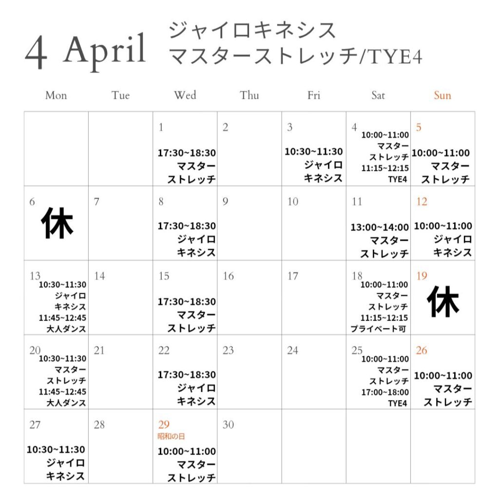 ●4/29水曜日夜のダンスレッスンは全てお休みです。